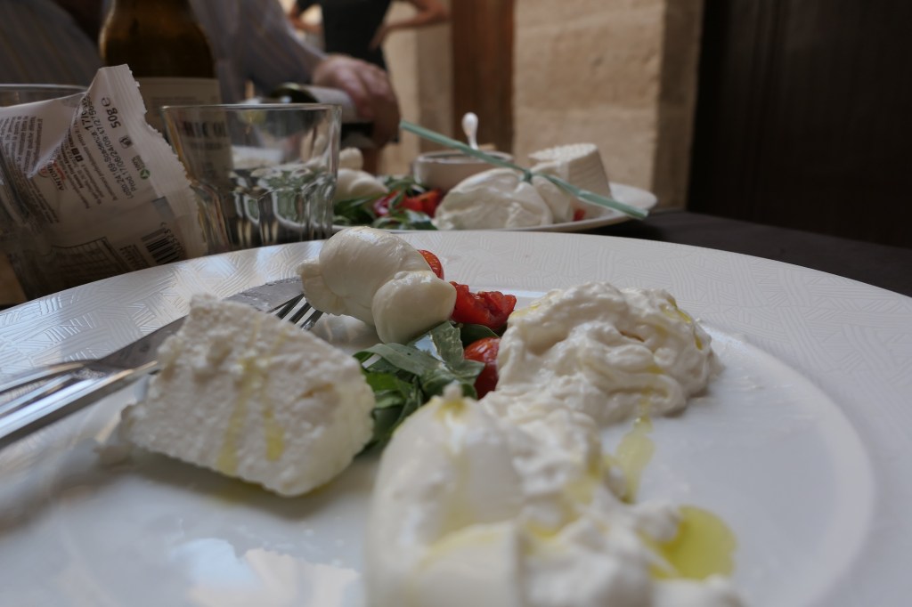 L’osteria le Arpie où l’on se régale d’un plateau de latticini, différents fromages (mozzarella, stracciatella, burrata…) avant le plat de résistance… les orecchiette !