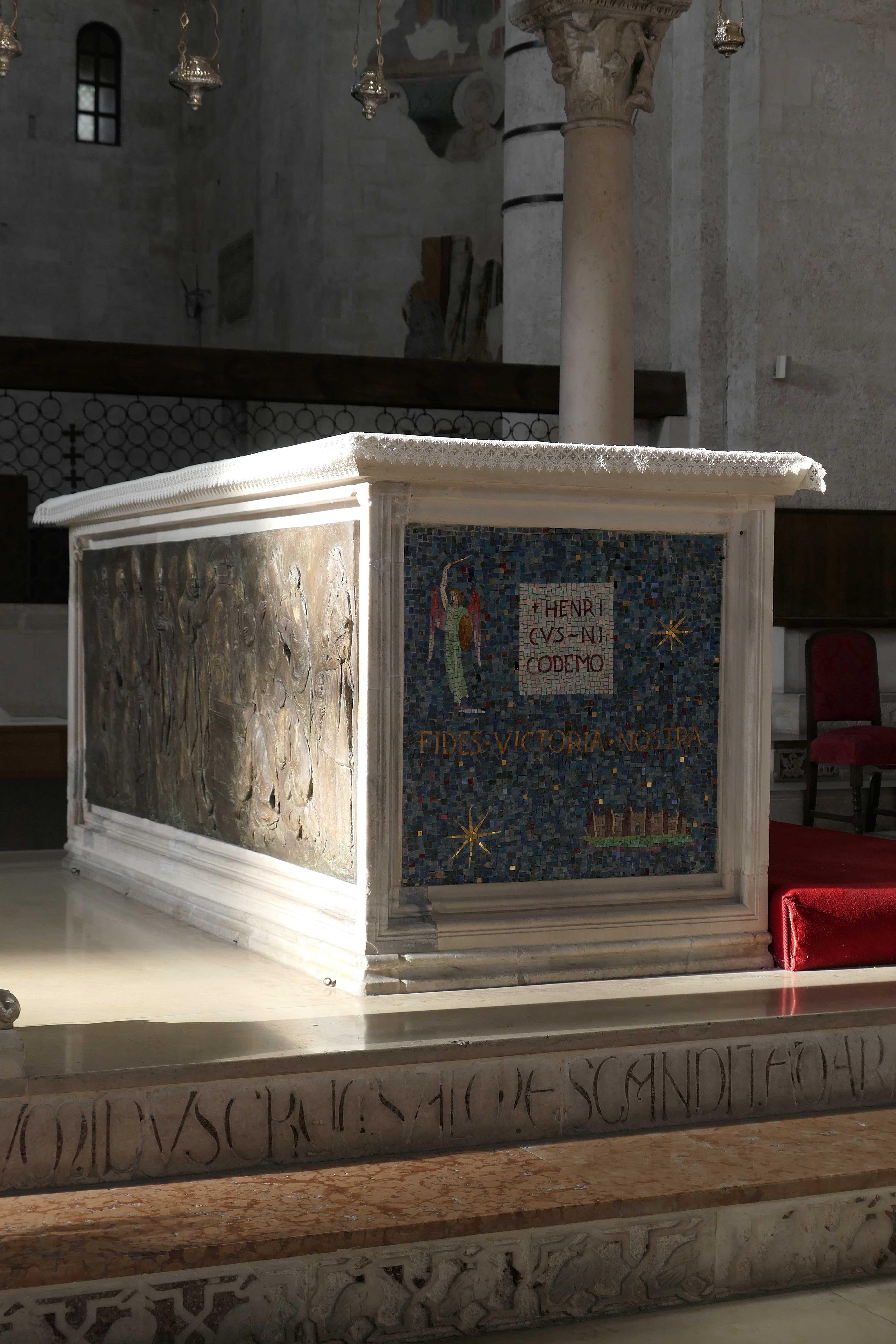 Saint-Nicolas, plutôt fêté dans les Vosges chez nous, est aussi le saint patron de Bari. On retrouve sa statue à plusieurs endroits dans la ville, reconnaissable entre mille avec sa tenue d’évêque. La ville de Bari reçoit ses reliques à partir de 1087 et celles-ci sont déposées dans la basilique qui porte son nom.